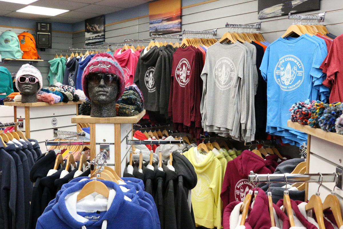 Visit our shop in Bude to see the full range. Fitting rooms are available for you to try before you buy.